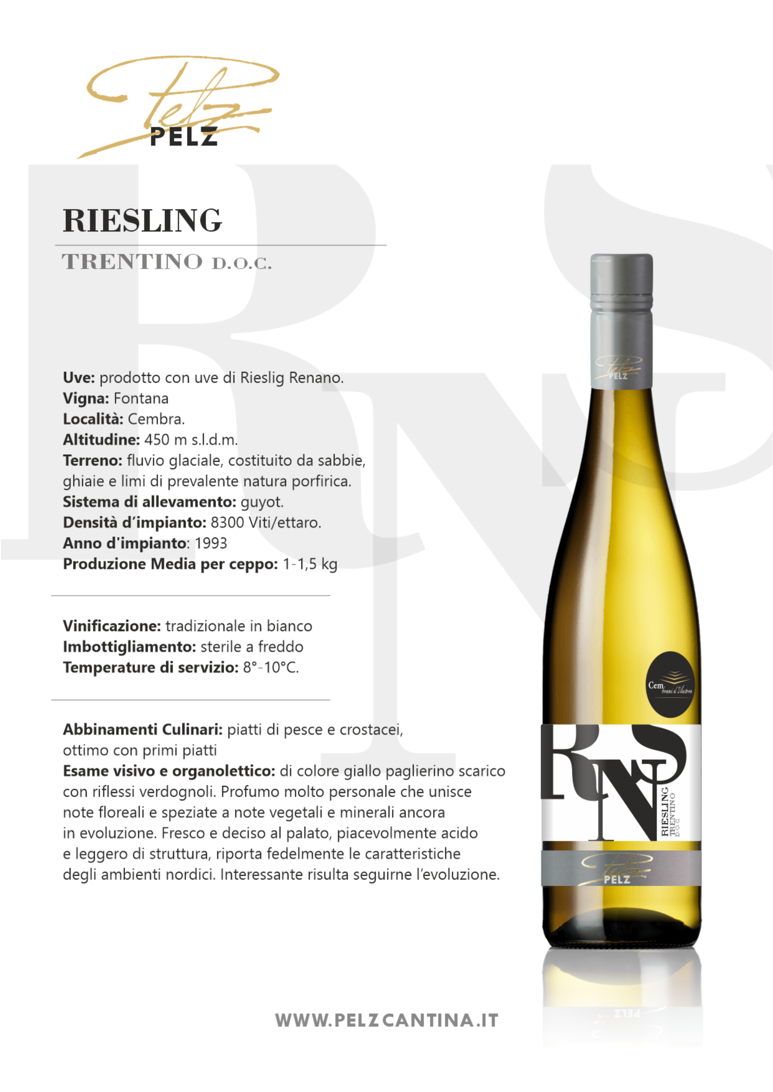 Esame visivo e organolettico: di colore giallo paglierino scarico con riflessi verdognoli; il profumo tipico unisce note floreali e speziate a note vegetali e minerali. Ha sapore fresco e deciso, piacevolmente acido e leggero di struttura che riporta fedelmente le caratteristiche degli ambienti nordici.